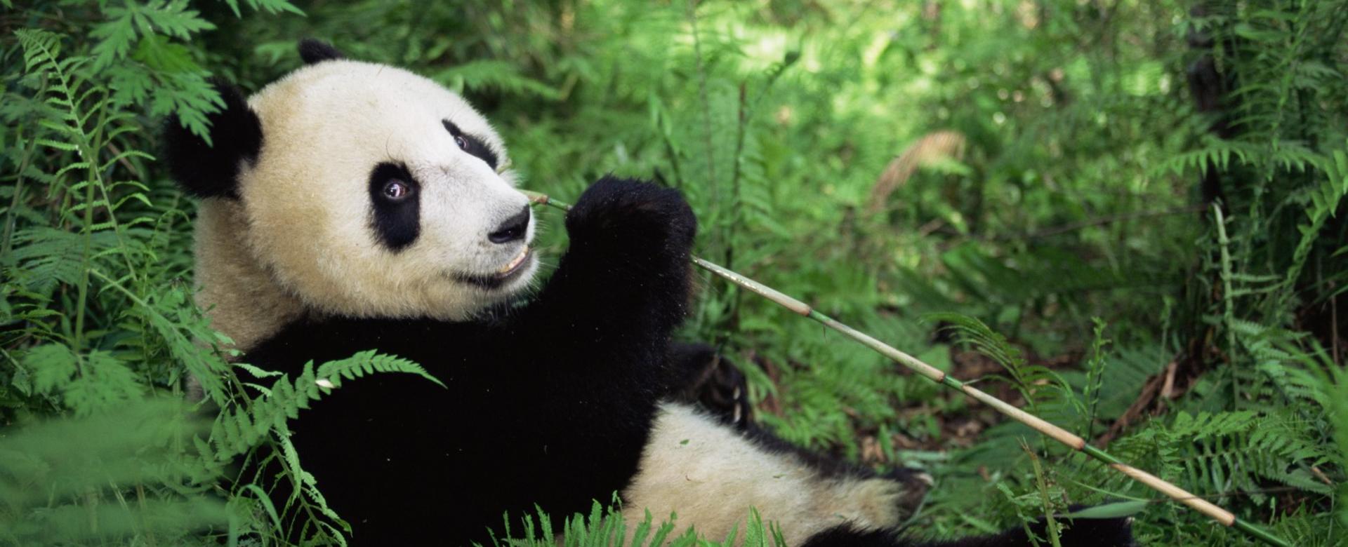 Układ pokarmowy pandy zbudowany jest podobnie, jak u innych niedźwiedzi, czyli zwierząt mięsożernych. Z tego powodu jedynie niewielka część spożywanych pędów, liści i łodyg bambusa zostaje strawiona, a większość jest po prostu wydalana. Żeby zapewnić wystarczającą ilość energii do funkcjonowania, panda wielka musi zjeść około 14-40 kg bambusa dziennie. Na poszukiwanie i spożywanie pokarmu poświęca nawet 12 do 16 godzin każdego dnia! Nic dziwnego, że zwierzęta te nazywane są także niedźwiedziami bambusowymi.